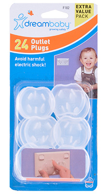 Electrical outlets are in a crawling baby’s direct line of sight and these stay-in-place hinged caps protect against accidents.